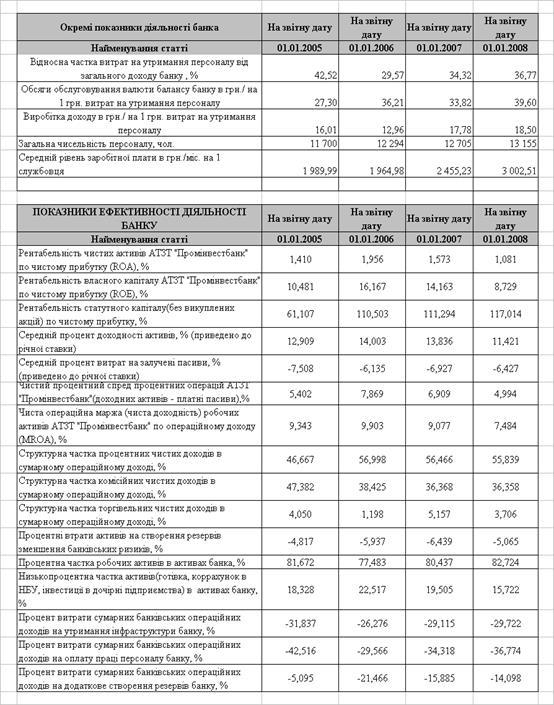 Досліджена політика екстенсивного зростання валюти балансу банку АТЗТ “АК Промінвестбанк” у 2004 – 2007 роках та розширення його інфра-структури, з точки зору акціонерів, - не є ефективною, оскільки разом з політикою впровадження переорієнтації банку з переважно юридичних клієнтів в сторону ощадного банку для фізичних осіб ROE зменшився з рівня 16,2% за 2005 рік до рівня 8,7% за 2007 рік, тобто дохідність акцій банку стала практично в 2 раза нижче ринкової доходності інвестиційного капіталу в Україні.