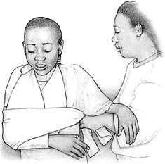 Если травмировано плечо, локоть или запястье, фиксируйте руку с помощью косыночной повязки и привяжите повязку к туловищу.