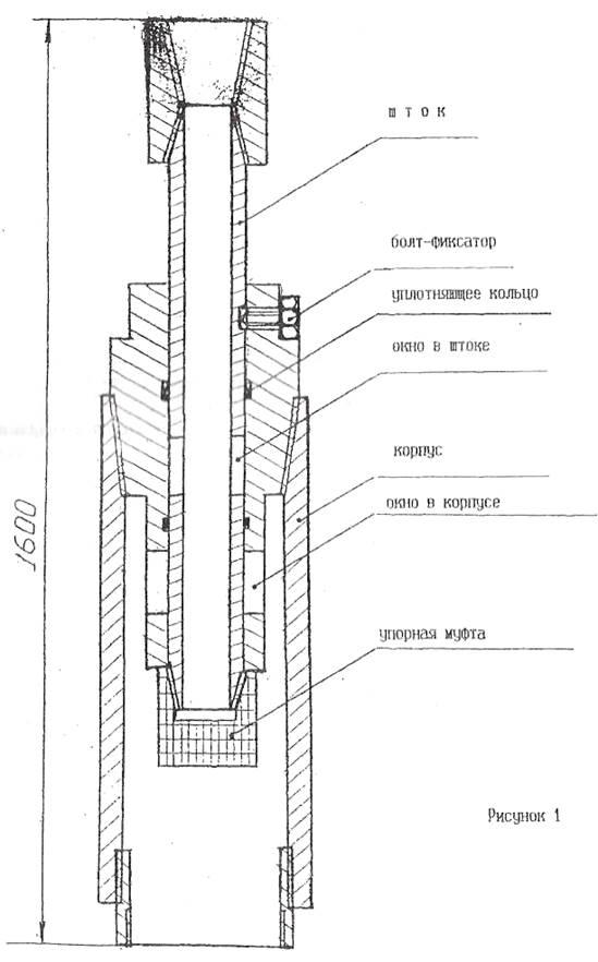 Депрессионное устройство (рис.1) изготавливается из пришедшего в негодность штангового насоса Ш1-44 и состоит из: штока, корпуса 0114 мм, переводников, упорной муфты.