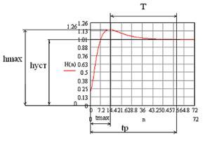 – відповідно максимальне та усталене значення перехідної характеристики для досліджуваної системи побачимо на графіку (рис.20))
