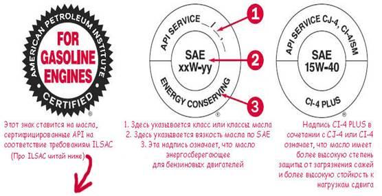 · одно или два числа, разделенных дробью, указывающие класс или классы вязкости (для всесезонных масел). Для всесезонных масел цифра в числителе характеризует зимний класс, а в знаменателе - летний; буква "з" указывает на то, что масло - загущенное, т.е. содержит загущающую (вязкостную) присадку.