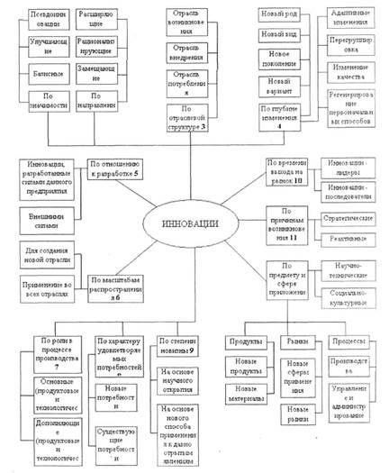 Степаненко Д.М. считает целесообразным закрепить следующую последовательность критериев классификации прогрессивных нововведений и соответствующие им виды инноваций: