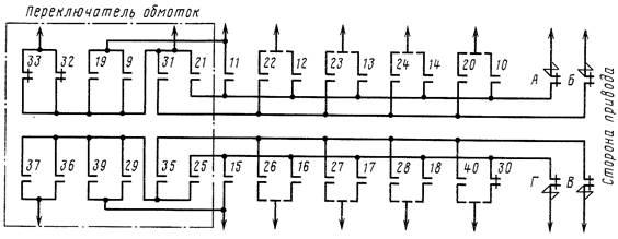 На 16-й позиции выпрямительный мост оказывается включенным на полное напряжение всех восьми секций обмотки низшего напряжения трансформатора. Для уменьшения нагрева контактора 8 параллельно ему включен контактор 10.