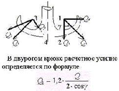 Если груз висит на одном стропе, то в сечении 3-4 возникает напряжение среза от Q2 , изгиба от Q1 и растяжения от Q1.