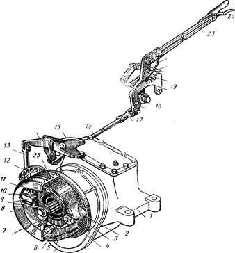 Отвернув гайки с болтов крепления крышки, снимают крышку и диафрагму. Ослабив контргайку, отсоединяют вилку штока от рычага, после чего вынимают из корпуса шток с пружинами и опорным диском.