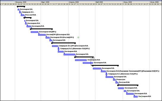 Я выбрал пятидневную рабочую неделю и дату начало проекта – 04.02.2008. Окончание проекта намечено на 17.06.2008, что является приемлемым значением, для даты окончания проекта. Данная дата соответствует реальным срокам сдачи бакалаврской работы.