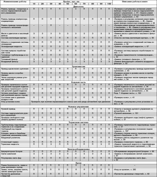 П - проверка (при необходимости замена/доливка/регулировка/смазка);