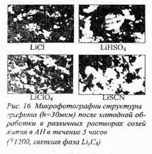 электрода путем химического, физического или электрохимического воздействия улучшает условия для прохождения электрического тока, подвода электронов и катионов лития в зону реакции и таким образом способствует увеличению скорости внедрения и степени, катионов лития в соединении Li,C8
