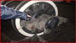 Отсутствие признаков перегрева буксовых подшипников (на ощупь по внешним признакам), герметичность букс и отсутствие трещин в корпусе, простукиванием буксовых болтов определяем надежность крепления болтами заземляющих устройств и буксовой крышки. Ослабшие болты затягиваем, отсутствующие болты или имеющие сорванную резьбу, заменяем новыми.