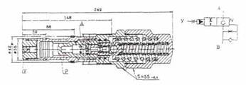 Для поддержания заданной оператором скорости перемещения рабочих органов, движущихся под действием попутной внешней нагрузки, и обеспечения фиксации положения рабочего оборудования в гидросистемах самоходных машин применяются клапаны патронного исполнения для встраивания в панели и индивидуальные корпуса. Общий вид такого тормозного гидроклапана и его гидросхема представлены на рис. 9.