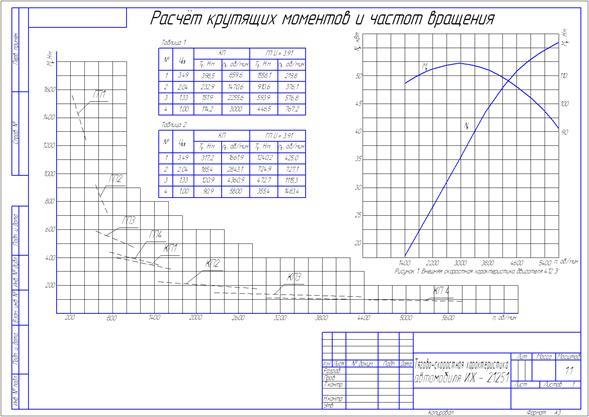 В этой части работы проведём расчёт крутящих моментов и частот вращения на всех выходных валах агрегатов трансмиссии (коробка передач, главная передача) и на всех режимах.