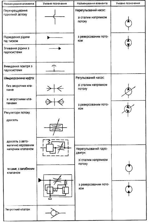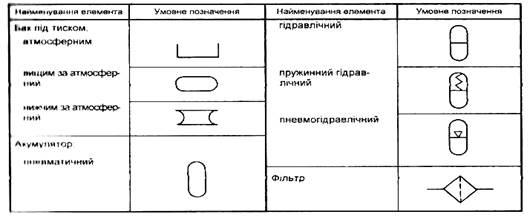 Таблиця 8.Умовні позначення елементів гідроприводу