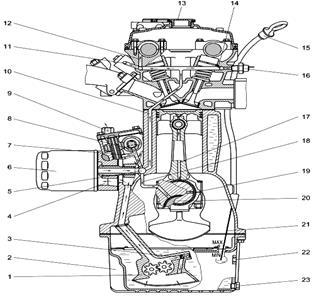 Рисунок 1 - Одноцилиндровый карбюраторный двигатель внутреннего сгорания