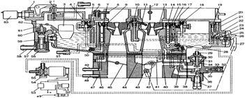 сгорание и расширение) - служит для преобразования энергии сжигаемого топлива в полезную механическую работу. Сжатая рабочая смесь воспламеняется электрической искрой; выделяемое при этом тепло нагревает газы до температуры 2200-2500° С. Расширяющиеся газы - создают давление в цилиндре над поршнем в 35-40 кГ/см2