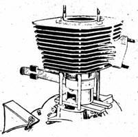14. Взять двигатель за цилиндр и рычаг пускового механизма и снять его с рамы.