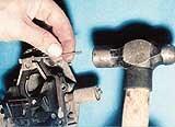 Перевернувши корпус, витягуємо головні паливні жиклери. У разі потреби для цієї мети можна використовувати гостро заточену паличку діаметром 3,5–4 мм і завдовжки 80–100 мм.
