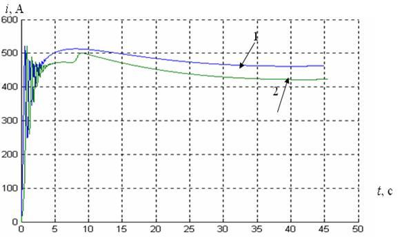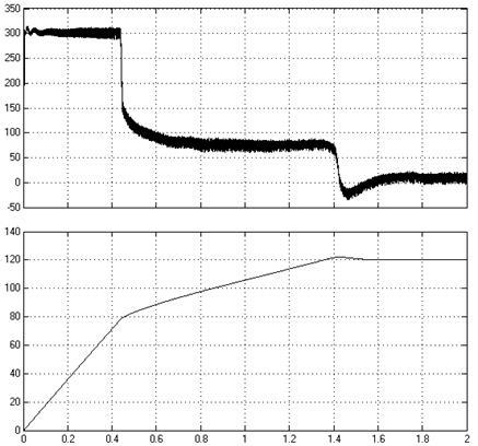 1. При використанні математичної моделі та структури САР електропередачі дизель-потяга, виконаних у відповідності до традиційних підходів на основі використання принципу регулювання за помилкою процес розгону залежить від наступних параметрів: темпів наростання напруги живлення, завантаженості складу і закону керування. Проведене моделювання роботи такої системи довело, що при значеннях цих параметрів p/J = 0.0001; U/f = 10; темп нарощування напруги живлення ТАД – 8 B/сек процес розгону протікає нормально, але потребує подальшого уточнення та оптимізації.