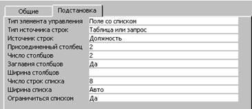 Для более удобной работы при заполнении таблицы «Сотрудник» поле «Должность» имеет подстановку из справочника «Должность» (см. рис. 1.4)
