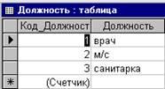 - Таблица «Должность» с полями КодДолжн и Должность (см. рис. 1.6.)