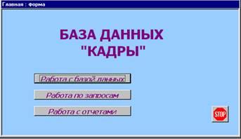 - Кнопка «Работа с базой данных» - предназначена для работы с формой «Сотрудники»;