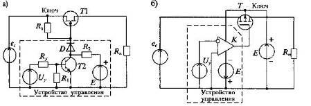 Рисунок 6. Схема ключа на полевом транзисторе с управляющим p-n-переходом (а) и с изолированным затвором (б)