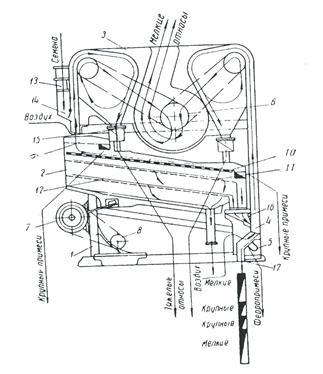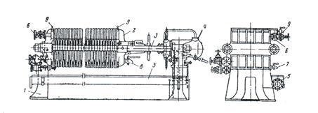 Сировина, що містить олію подається в пресуючий тракт між зеєрним циліндром 1 та поверхнею пустотілого шнекового валу, транспортується витками шнекового валу та пресується, переходячи при цьому з однієї ділянки 2 на іншу (рис. 5.1). При стисканні з сировини виділяється олія, більша частина якої видаляється з пресую чого тракту через отвори леєрного циліндру 1. Частина олії в основному з шарів сировини, що прилягають до поверхні шнекового валу, відводиться через зазори утворені кільцями 3. Проходячи через зазори між кільцями 3 олія стікає в поздовжні пази 6 на поверхні циліндричного стержня 5, а звідти відводиться в збірник олії 8.