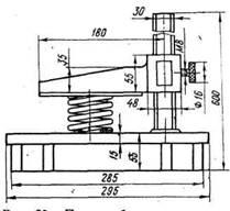На привалочные фланцы принятых и опломбированных приборов устанавливают предохранительные щитки (резиновые, пластмассовые, картонные) и сдают в кладовую. Авторегуляторы рычажных передач ремонтируют в отделении, находящемся, как правило, рядом с отделением наружной обмывки. После обмывки их разбирают, очищают от грязи внутренние полости и поверхности деталей регулировочного механизма, а затем ремонтируют и испытывают с применением типовой оснастки. На принятом после испытания авторегуляторе, так же как и на тормозном приборе, закрепляют бирку с клеймами.
