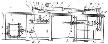 При нормальных зазорах между колодками и колесамив процессе торможения упор 18приближается к корпусу регулятора, но не достигает его или только соприкасается с ним. Усилие от тягового стержня передается на тяговый стакан 7, который входит в сцепление с регулирующей гайкой 8и через нее на регулирующий винт 1 и в рычажную передачу.