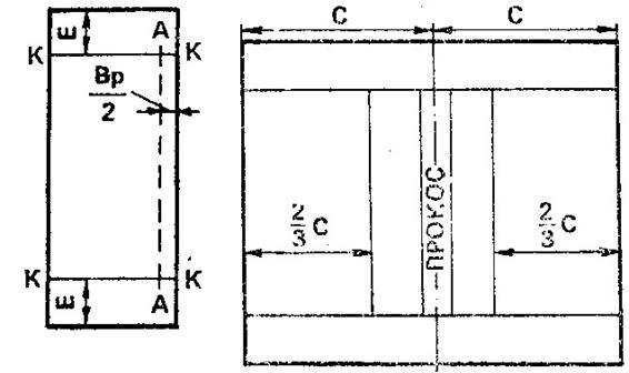 При движении с расширением прокосов (рис. 1,б и 2,б), скашивание начинают с прокоса между смежными загонами, и последовательно расширяет его, выкашивая длинные стороны первого и второго загонов. Когда ширина прокосов достигнет ширины каждой из оставшихся нескошенных частей первого и второго загонов, докашивают с обеих сторон первый, а затем второй загон.