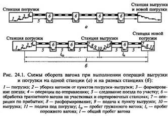 Оборот грузового вагона – это время, необходимое для выполнения одного полного перевозочного цикла, т.е. время от начала одной погрузки до начала следующей погрузки в этот же вагон.