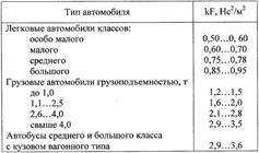 Фактор обтекаемости kF характеризует удельное (на единицу квадрата скорости) аэродинамическое сопротивление автомобиля. Чем оно меньше , тем меньше потери мощности автомобиля на преодоление сопротивления воздуха. Фактор обтекаемости проектируемого автомобиля выбирают, ориентируясь на литературные данные. Его можно выбирать ориентировочно по таблице: