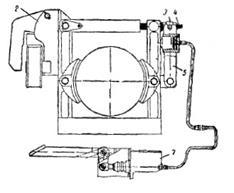 1 – тормозной рычаг; 2 – электромагнит тормоза; 3 – траверс; 4 – тормозной шток; 5 рабочий цилиндр; 6 – трубопровод; 7 – цилиндр управления; 8 – механический привод