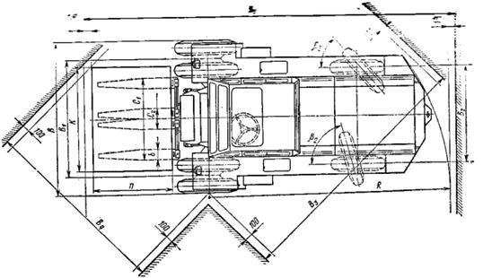 Согласно требованиям СЭВ автопогрузчик должен сохранять устойчивость при поперечном уклоне, равном 6%, т. е. при угле α= 3° 26`