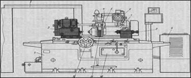 а — шлифование с продольными рабочими ходами: 1 — шлифовальный круг; 2 — шлифуемая заготовка; б — глубинное шлифование; в — врезное шлифование; г — комбинированное шлифование; Snp