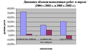 Отмечается положительная динамика коммерческой загрузки воздушных судов авиакомпании. По сравнению с апрелем 2004 года на 2% увеличился процент занятости пассажирских кресел, на 2,8% увеличился процент коммерческой загрузки.