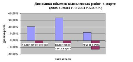 Отмечается положительная динамика коммерческой загрузки воздушных судов авиакомпании. По сравнению с мартом 2005 года на 8,9% увеличился процент занято