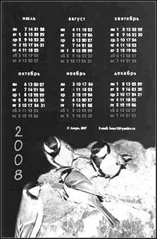 Дизайн календаря. Оформление каждого вида фирменного рекламного календаря имеет свои особенности. Большие визуальные образы, объединенные общей идеей, нестандартное оформление календарной сетки, возможность вырубки, тиснения, выполнения верха календаря из дизайнерского картона, все это поможет сделать настенный перекидной календарь эффектным и имиджевым фирменным рекламным изделием. В квартальном календаре основное внимание уделяется целостности общего вид а календаря. Для удешевления стоимости обычно берутся готовые стандартные календарные блоки, отпечатанные заранее в одной из крупных типографий большим тиражом (сотни тысяч или даже миллионы экземпляров). Они могут быть разными по плотности и качеству бумаги, а также по цветам, что позволяет выбрать подходящий вариант в каждом конкретном случае. Иногда под определенные задачи необходимо напечатать уникальные блоки, при этом цифры на блоках квартальных календарей делают достаточно большими, чтобы их легко можно было различать с некоторого расстояния. Проволока, для скрепления календаря, имеет стандартные цвета. Самые распространенные цвета - это белый, черный и серебряный, имеется также проволока синего, красного, желтого, зеленого и золотого цвета. Пикколо чаще всего делают золотого или серебряного цвета, но бывают также черные, зеленые, красные, белые и желтые колечки пикколо. Стандартные курсоры красного цвета, возможные дополнительные цвета: синий и зеленый.
