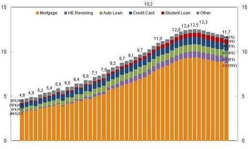 Рисунок 10 – Общий баланс займов населения в 1990–2010 годах и его структура (в трлн. долл.)