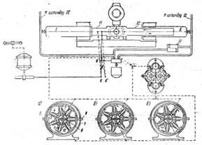 передвинуть вправо, то поршни верхних цилиндров будут осуществлять всасывание через отверстие 9,