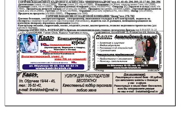 ИНФОРМАЦИОННЫЕ ТЕХНОЛОГИИ В ИЗДАТЕЛЬСКОМ ДЕЛЕ НА ПРИМЕРЕ ГАЗЕТЫ «ВСЕ ВАКАНСИИ БРАТСКА»