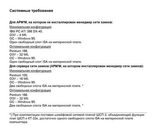 . Система управления доступом Менуэт 2000 предполагает наличие постоянно функционирующей сети рабочих станций, в составе которой АРМ-ы'М имеют возможность реализовывать свои управляющие и контролирующие функции. Данный сетевой вариант функционирования СУД наиболее полно реализует все возможности системы, заложенные в нее при разработке. Локальный вариант функционирования СУД может иметь место в случае размещения сервера баз данных и сервера сети замков на одном компьютере (АРМ'М службы охраны). Выполнение управляющих и контролирующих функций при этом возможно лишь с этого одного компьютера. Поскольку матрицы доступа и расписания проходов для каждой двери, оснащенной контроллером Менуэт, хранятся помимо базы данных объекта контроля еще и в памяти этого контроллера, то система работоспособна и в отсутствие всяких управляющих компьютеров. Этот автономный вариант функционирования СУД устойчив даже к длительным перерывам в энергопитании, поскольку информация в контроллерах хранится в энергонезависимой памяти (включая и динамическую шкалу реального времени). При последующем включении питания никаких восстановительных мероприятий проводить не требуется и система управления доступам Менуэт 2000 продолжает функционировать в сетевом или локальном вариантах.