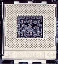 Эта крышка защищает кристалл от чрезмерного давления и увеличивает поверхность термического контакта между процессором и теплоотводом. Допустимое усилие прижима для многих микросхем Intel, снабженных модулем IHS, достигает 100 фунтов (около 40 кг), что практически избавляет пользователей от опасности повреждения кристалла при установке теплоотвода. Интегрированный распределитель тепла включен во все процессоры Pentium 4 и Pentium III/Celeron Tualatin, созданные по 0,13-миикронной технологии.При использовании процессоров AMD или Intel, не содержащих металлической пластины интегрированного распределителя тепла, особое внимание обращайте на ровное расположение контактных поверхностей кристалла и радиатора во время закрепления или снятия фиксатора теплоотвода.