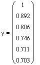В первом столбце приведены значения x, во втором столбце - соответствующие значения приближенного решения