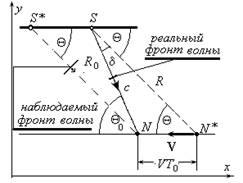 , будет распространяться к наблюдателю конечное время. За время этого распространения источник переместится со скоростью V