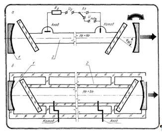 В Не— Ne-лазерах обычно используют зеркала, радиусы кривизны которых подобраны так, чтобы при заданном расстоянии между зеркалами образовывался устойчивый оптический резонатор. Зеркала резонатора крепятся в специальных головках, механизм которых позволяет юстировать резонатор с необходимой точностью. Головки могут располагаться на общем жестком основании или сочленяться с каркасом корпуса лазера. В настоящее время преобладают конструкции лазеров с внешним расположением зеркал по следующим причинам: