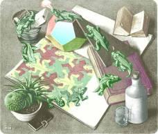 Все же творчество Эшера интересно математикам не только потому, что в его работах можно обнаружить отголоски конкретных математических результатов. Скорее они вызывают ассоциации с общими математическими идеями. Платон считал, что абстрактные идеи живут отдельно в "мире чистых сущностей" (таковы идеи пространства и времени). В таком, платоновском понимании мир Эшера и мир математики.