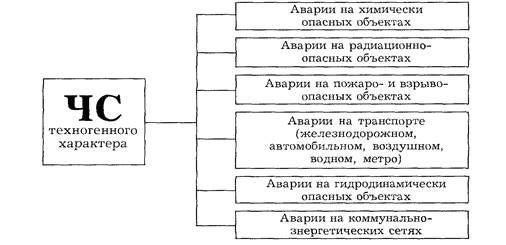 ЧС техногенного характера разнообразны как по причинам их возникновения, так и по масштабам. По характеру явлений их можно подразделить на 6 групп (рис.2)[5]