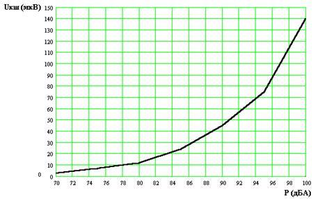 Рис. П.5.1. Зависимость допустимого значения звукового давления от величины звукового давления развиваемого в месте установки телефонного аппарата "Телур"