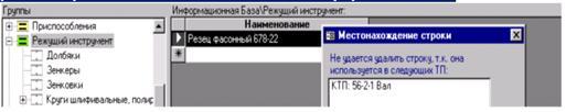 При открытии ИБ кнопкой […] производится автоматический вход в группу «Режущие инструменты». После выбора