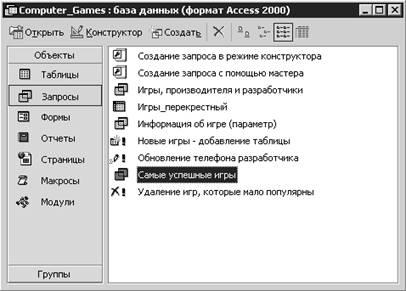Среди них есть запрос с параметром, на обновление, на удаление, перекрестный, на создание таблицы.